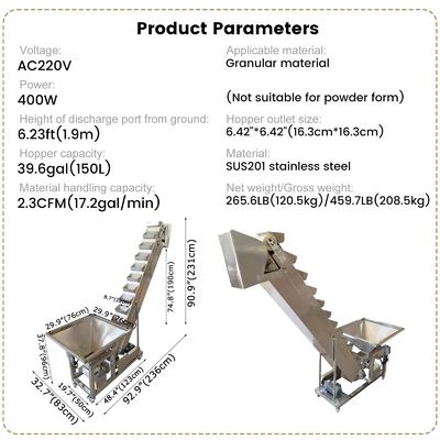 Hopper capacity | 39.6gal (150L) | Material | SUS201 stainless steel |
